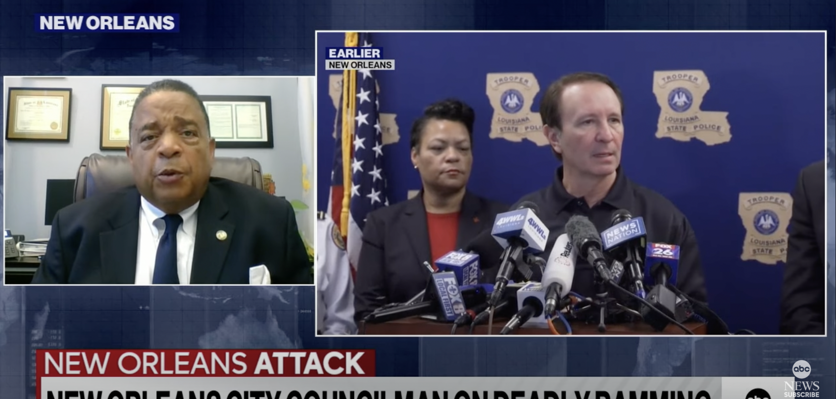 News ‘The citizens of New Orleans are strong,’ city Councilman Eugene Green tells ABC News Published 1 year ago on January 2, 2025 By Bella May Share Tweet Related Topics:Featured Up Next Delaware’s governor-elect hopes his state will be a model for the country Don't Miss Treasury Dept. says China state-sponsored hacker accessed unclassified documents Continue Reading You may like Dr. Rashad Richey Offers Exclusive Analysis on Veteran Slade Douglas $6.8mm Verdict Slade Douglas Offers Detailed Analysis of Case Black Army Vet Wins $6.8M vs LAPD Dec. 15 Trial Date Set for $30M Retaliation, Sexual Assault, and Torture Case Against LAPD and City of Los Angeles Zohran Mamdani to win New York City mayoral race Childhood vaccination rates decling nationwide News Warnock: We’re seeing Project 2025 play out ‘before our very eyes’ Published 1 year ago on February 2, 2025 By Bella May Continue Reading News American hostage expected to be released by Hamas this weekend Published 1 year ago on February 2, 2025 By Bella May Continue Reading News Medical jet carrying 6 crashes into Philadelphia neighborhood Published 1 year ago on February 2, 2025 By Bella May Continue Reading Advertisement Latest Trending Videos National1 month ago Dr. Rashad Richey Offers Exclusive Analysis on Veteran Slade Douglas $6.8mm Verdict National2 months ago Slade Douglas Offers Detailed Analysis of Case Justice2 months ago Black Army Vet Wins $6.8M vs LAPD Business2 years ago New Federal Rules Unveiled to Crack Down on Airline ‘Junk Fees’ Business1 year ago Boris Kodjoe on the Power of Connecting DNC2 years ago Terry McAuliffe Discusses Presidential Politics Politics2 years ago Reflecting on South Africa’s Historic Election Anniversary: Why It’s Poignant This Year Congress2 years ago GOP Lawmakers Clash Over Senator Johnson’s Handling of Foreign Aid Package Business2 years ago New Federal Rules Unveiled to Crack Down on Airline ‘Junk Fees’ Trending